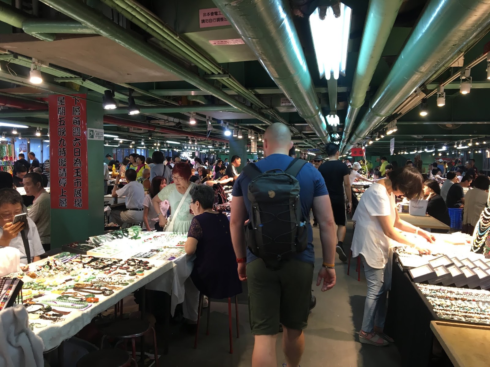 Jianguo Holiday Flower Market och Taipei Weekend Jade Market som ligger under en vägbro i ett parkeringsgarage nära Daan Park.